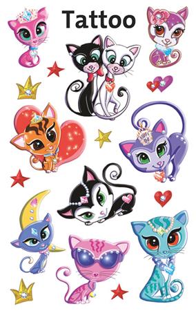 Cicás tetoválás a legmenőbb gyerekeknek! Lepje meg gyermekeit nagyszerű tetoválásokkal. Gyermekei imádni fogják a színes cicás tetoválásokat! Tökéletes ajándék, amely kiváló meglepetés lehet születésnapi partikra vagy egyszerűen a játék kedvéért.