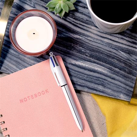 Golyóstoll, 0,32 mm, nyomógombos, négyszínű, BIC "4 Colours Shine"